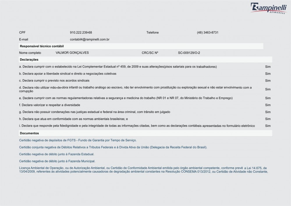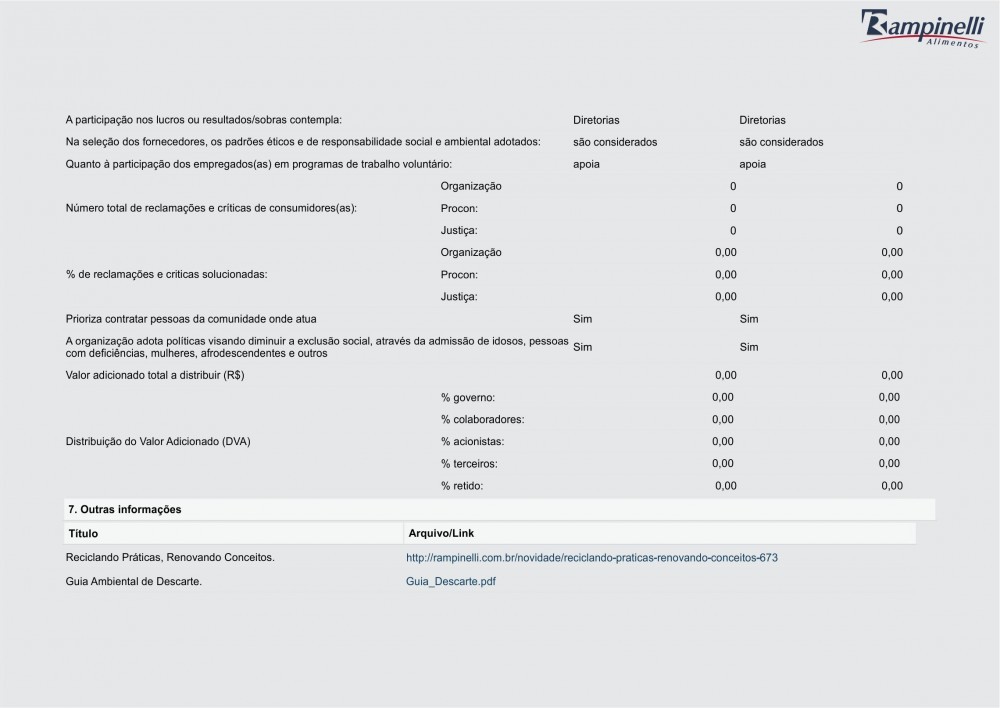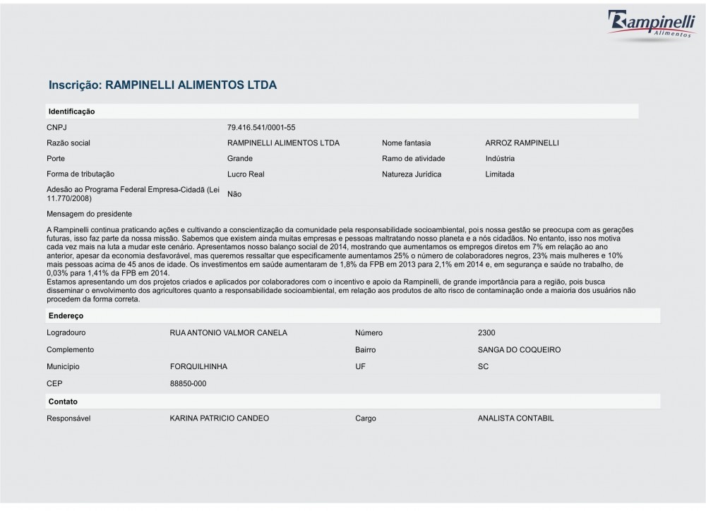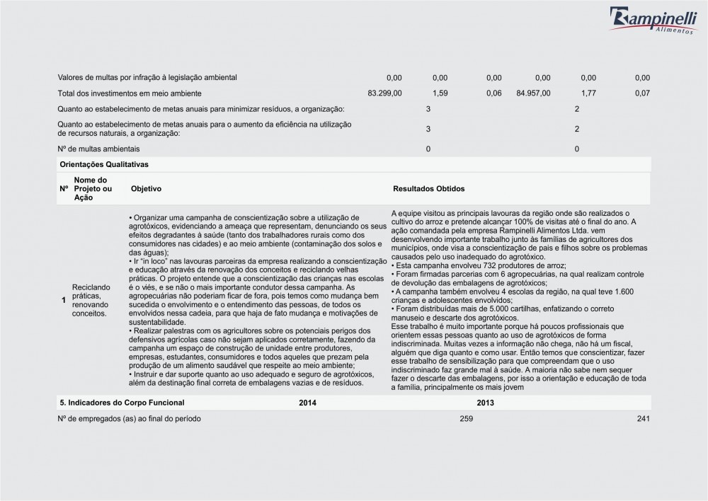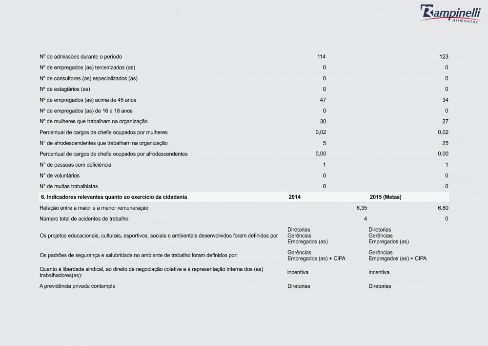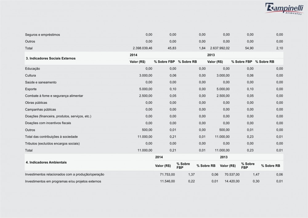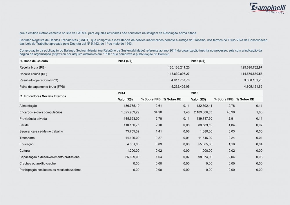 Balanço Social Rampinelli Alimentos 2014