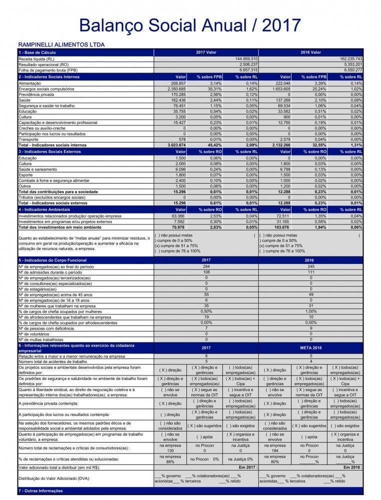 Balanço Social Rampinelli Alimentos 2017