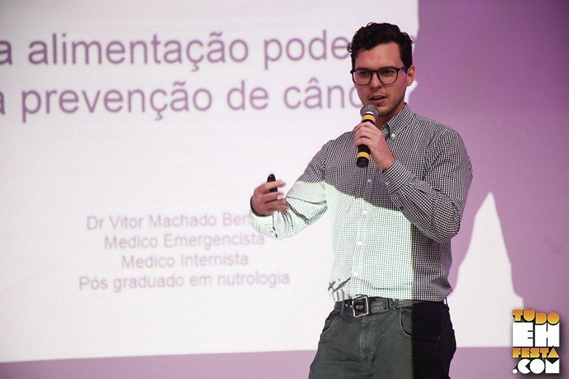 O Dr. Vitor Benincá Médico ministrou a palestra. Ele é formado pela Unesc em 2012, é pós-graduado em Nutrologia pela Abran, e subespecializado em Nutrologia Hospitalar pelo Hospital do Servidor Público de São Paulo.