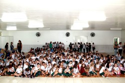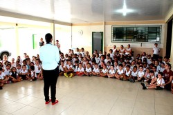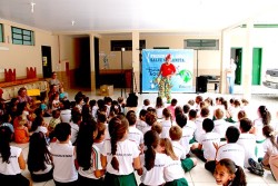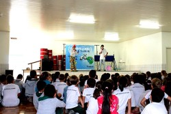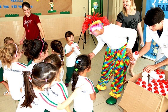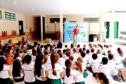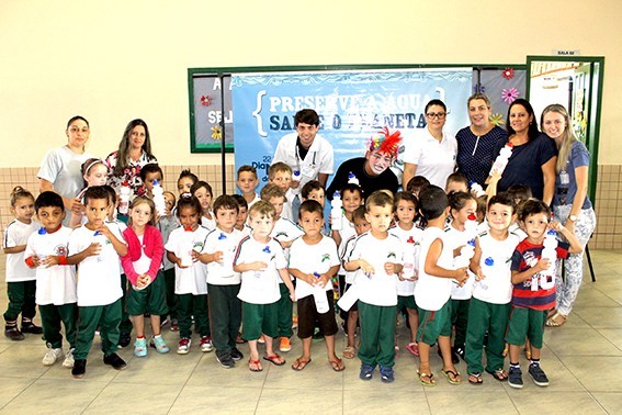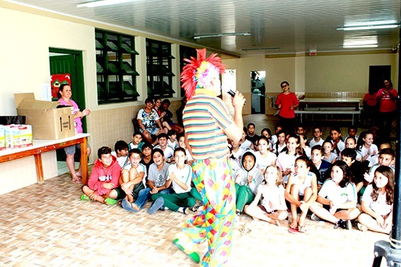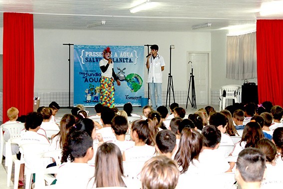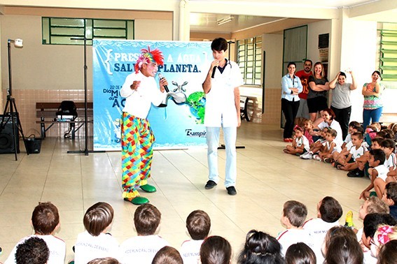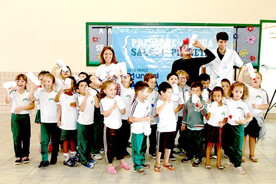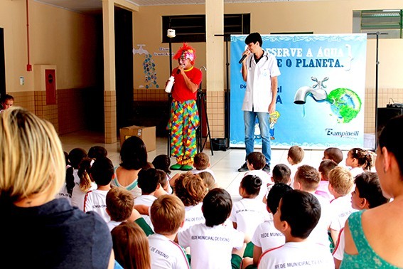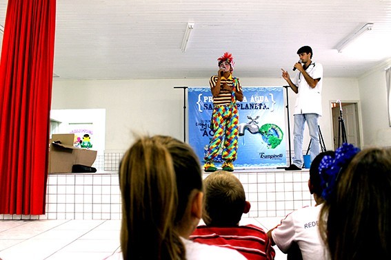 Realizado pela Rampinelli Alimentos, com o apoio da Prefeitura Municipal de Forquilhinha/SC, o projeto contou com a apresentação teatral com o "Palhaço Foguinho e o Doutor H2O".
