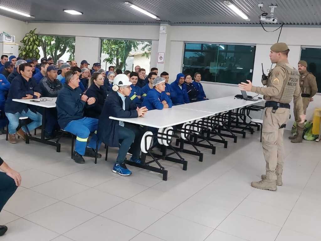 No dia 29 de maio, a Rampinelli Alimentos recebeu a visita do Cabo Gonçalves e do Cabo Daniel, da Polícia Militar de Forquilhinha, para uma palestra especial sobre Segurança no Trânsito, como parte das ações da campanha Maio Amarelo.