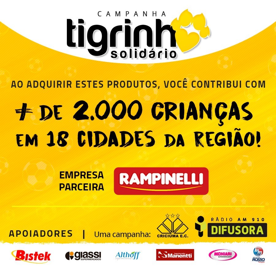 A Campanha Tigrinho Solidário acontece durante o mês de agosto com o intuito de arrecadar fundos para atividades das categorias de base do Criciúma Esporte Clube. Em 2019, a Rampinelli é empresa parceira dessa iniciativa.