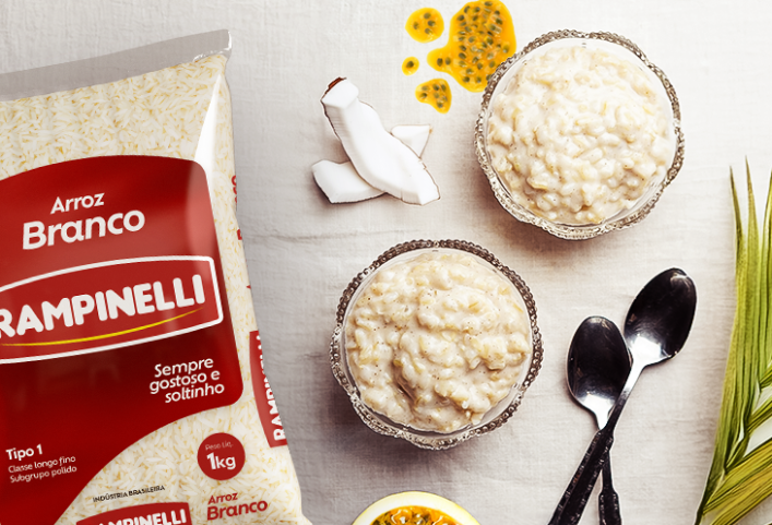 - 01 Em uma panela, cozinhe o Arroz Branco Rampinelli no leite com uma pitada de sal até que fique macio e o líquido seja absorvido.