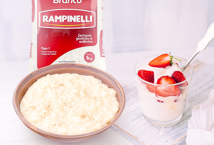 - 01 Cozinhe o Arroz Branco Rampinelli no leite com o açúcar até ficar macio e a mistura engrossar.