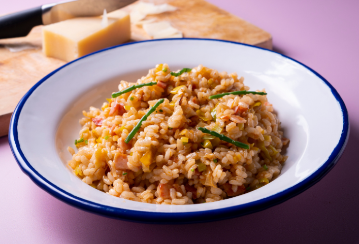 - 03 Acrescente o arroz e frite por mais 2 minutos.