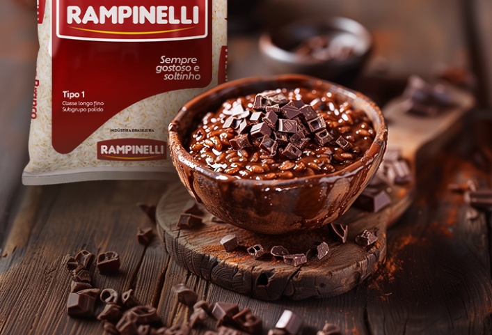 - 01 Em uma panela, coloque o chocolate em pó, o arroz lavado e escorrido, a água e leve ao fogo médio, mexendo de vez em quando, até secar quase toda a água.