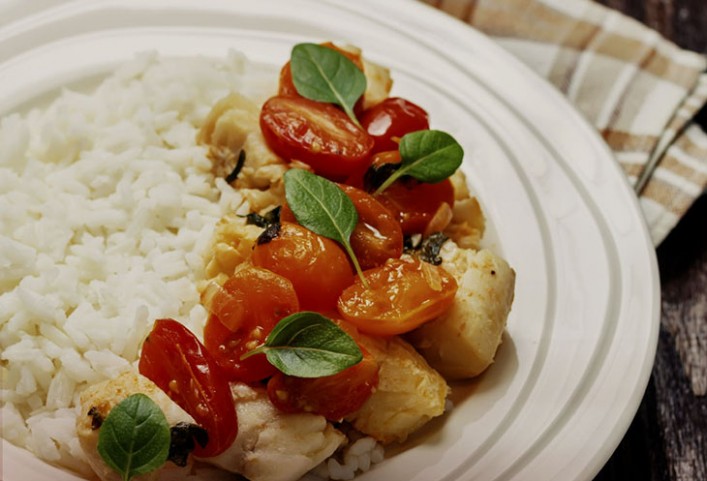 Receita de bacalhau ao molho de tomate manjericão