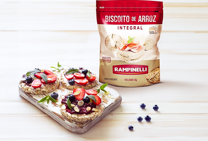 - 4 unidades de Biscoito de Arroz Integral Rampinelli