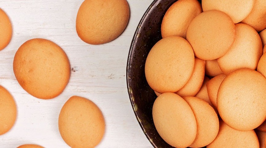 - 03 Unte e enfarinhe uma assadeira. Usando uma colher de café pingue um pouco da massa para cada biscoito, garantindo que deixa espaço entre elas (para não grudarem quando crescerem). Asse a 200ºC até as bolachas dourarem.