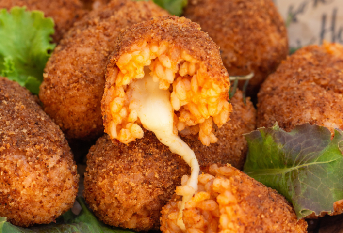 - 04 Pegue cada bolinha, achate-as uma por uma com as mãos, acrescente a mussarela em cubo bem no meio, feche a massa e refaça o formato de bolinha.