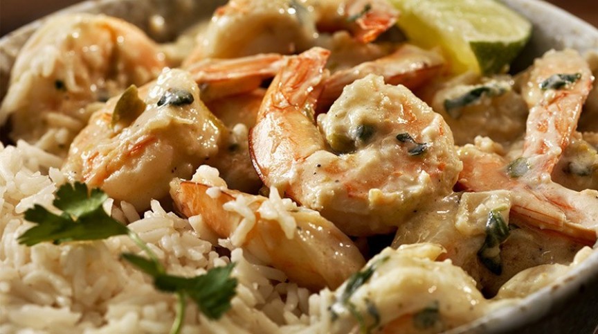 - 04 Quando tudo estiver desmanchando, junte o camarão e deixe cozinhar por 10 a 15 minutos. Adicione o leite de coco e o cheiro verde.