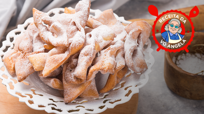 - 04 Estique a massa e frite. O segredo da Vó Angela aqui é fritar na banha de porco.Passar no açúcar e canela à gosto.