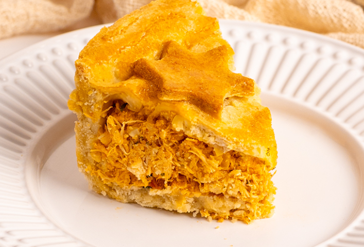 - 14 Abra a outra parte da massa e cubra o empadão, selando bem as bordas.