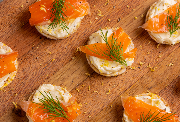 Receita de Gravlax com creme azedo no biscoito de arroz