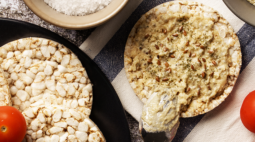 Tempere com sal e pimenta e sirva com os biscoitos de arroz integral Rampinelli.