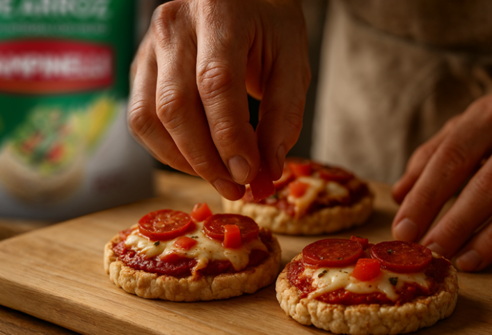 Receita de Mini Pizzas Fit com Biscoito de Arroz Integral com Milho Rampinelli