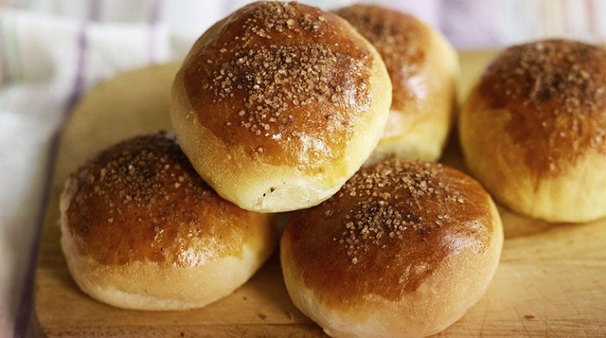 04 Numa superfície polvilhada com farinha de arroz e polvilho, boleie as porções, disponha as bolas de massa na fôrma untada com manteiga e polvilhada com farinha de arroz formando uma rosácea e deixe descansar e crescer por 40 minutos.