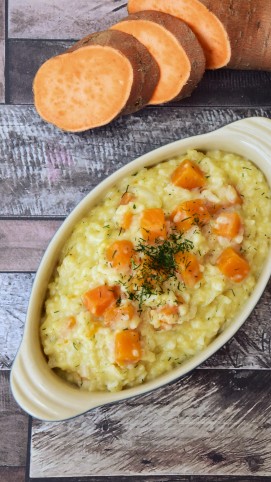 Receita Risoto de arroz integral com batata-doce e alho assado