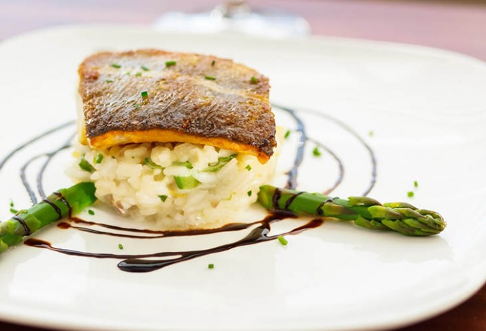 - 04 Quando o arroz estiver quase “al dente”, acrescente os aspargos e o bacalhau, mexa bem, por mais cerca de 5 minutos.