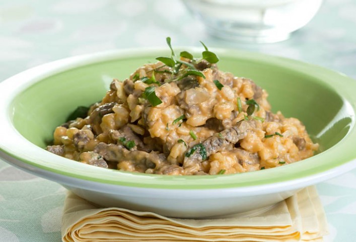 - 06 Misture a carne reservada, desligue o fogo e acrescente delicadamente a manteiga restante.