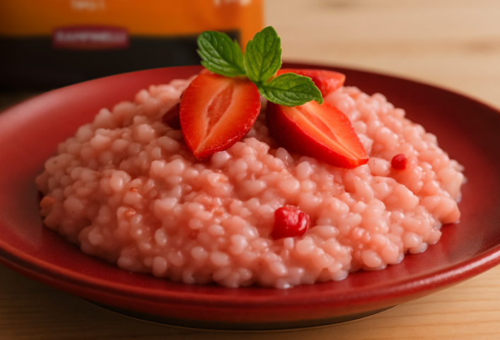 Receita de Risoto Doce com Morangos e Arroz Pérola Rampinelli