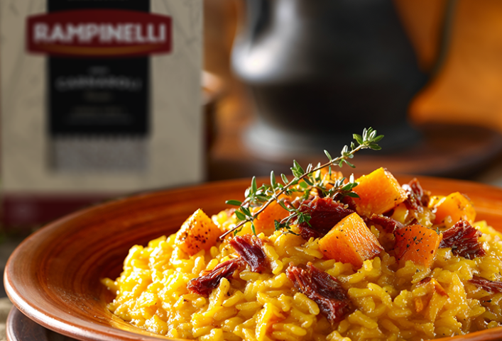 Receita de Risoto Junino de Abóbora com Carne Seca com Arroz Carnaroli Rampinelli