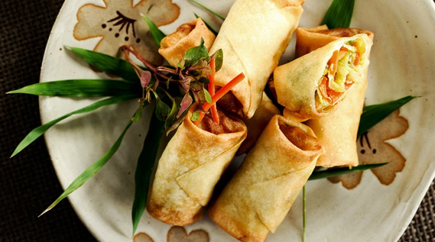 - 04 Montagem: Em fogo baixo e com o auxílio de um pincel de uso culinário, pincele a massa em sentido circular sobre uma frigideira antiaderente. A massa vai cozinhar e se soltar facilmente. Recheie e vá enrolando. Pincele shoyu sobre os rolinhos e leve para assar no forno pré-aquecido a 230ºc por 30 minutos.