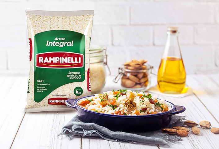 - 02 Em uma tigela grande, misture o arroz, as frutas secas, as nozes e a cebola. Regue com o suco de limão e o azeite, temperando com sal e pimenta a gosto. Sirva sobre as folhas de rúcula.