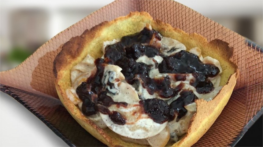 - 11 Em seguida misture uvas passas e 1/2 cx de creme de leite leve com a maçã e forre a massa;