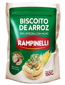 - Biscoito de Arroz Integral com Milho Rampinelli, quebrado em pedaços