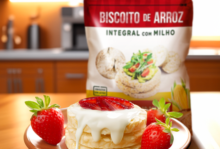 - 2 xícaras de Biscoitos de Arroz Integral com Milho Rampinelli